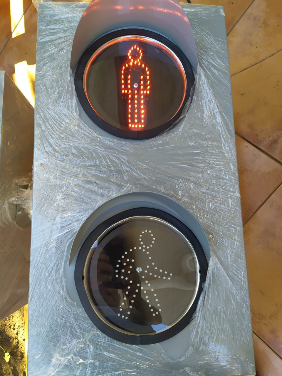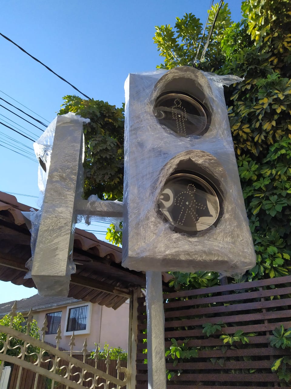 Precio publicado por Semáforo de dos caras, una VEHICULAR y la otra PEATONAL.